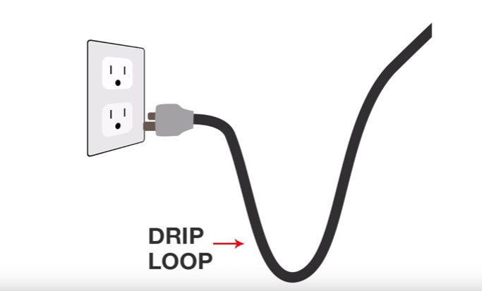 A loop in your electrical wire that goes down below the outlet and then back up to the outlet. It protects your outlet from water that may run down the wire by accident.