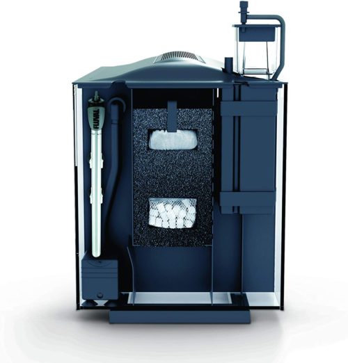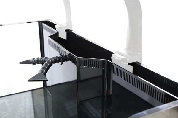 There are three primary ways saltwater aquariums filter water: By using a “hang on the back“, by use of a sump, or by use of a rear filtration chamber. A rear filtration chamber is merely a rectangular section of your display tank that is partitioned off into an overflow where you can place various types of filters.