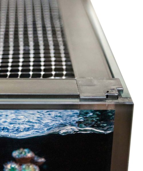 Or, larger systems sometimes have a “Euro Brace”, which is an interior glass frame that is siliconed to the tank to help provide extra support against the force of the water pushing out against the glass.