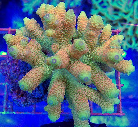 Most hobbyists break up stony corals into two distinct categories: LPS (Large Polyp Stony) and SPS (Small Polyp Stony), based on the overall size of the polyps.