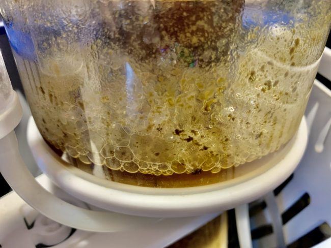 A “wet” skimmate would be a lighter brown color because the protein skimmer is tuned to allow more bubbles to overflow into the collection cup.